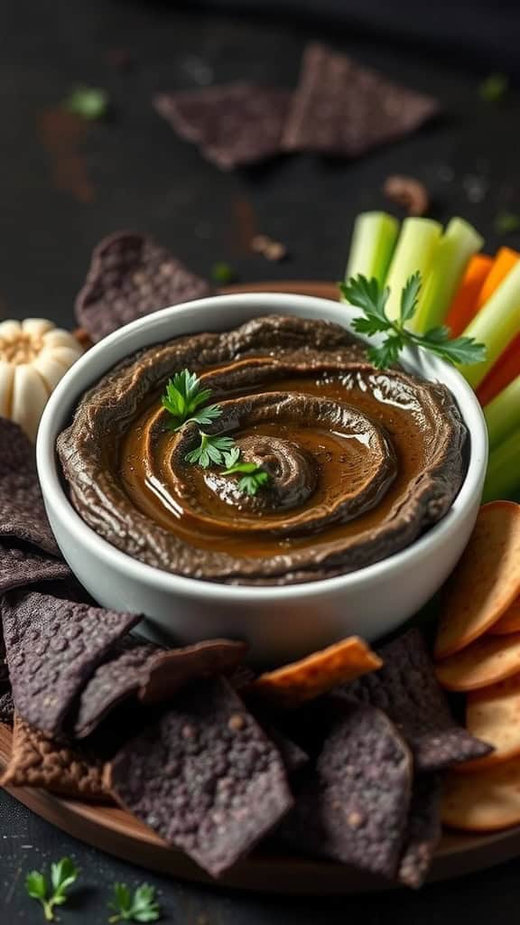 - Blend Ingredients: In a food processor, combine chickpeas, black garlic, tahini, olive oil, lemon juice, cumin, and salt.