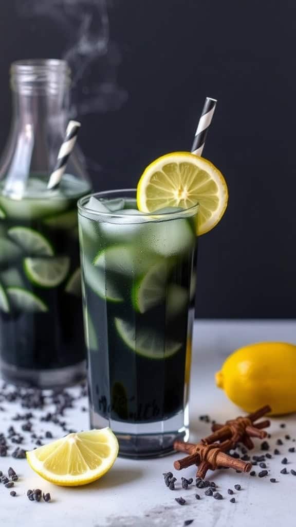 This drink not only captures attention but also offers a hint of detox benefits thanks to activated charcoal. It’s a simple mix of lemonade and charcoal, making it a breeze to prepare. With a garnish of lemon for that extra zing, it’s sure to be a hit among your guests.