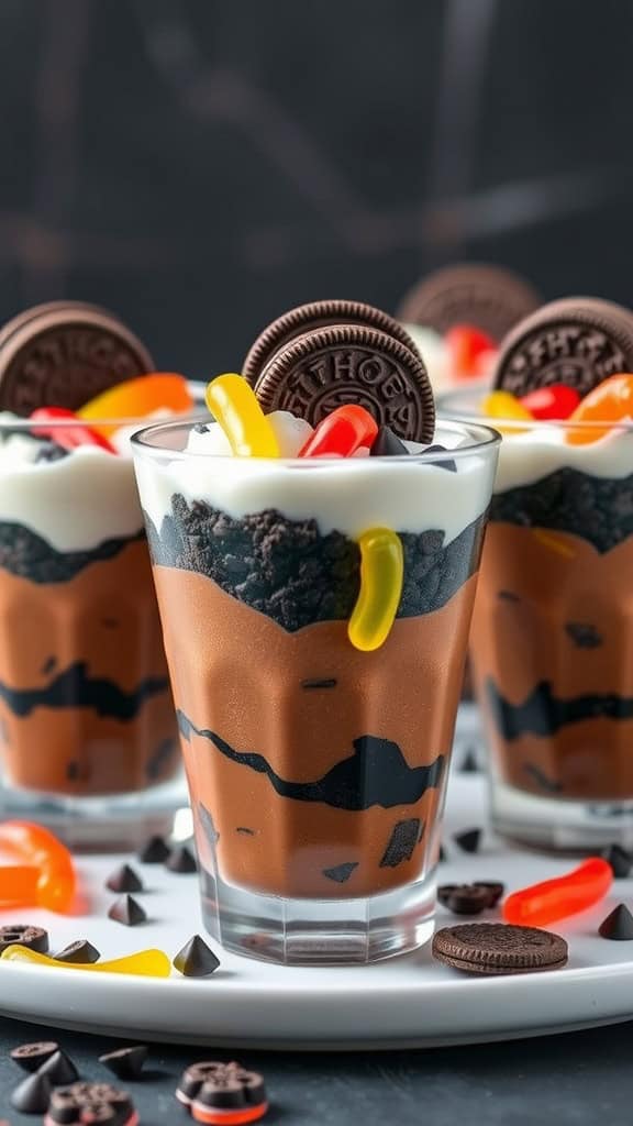 - Add the Worms: Finally, place gummy worms on top of the dirt for a creepy and festive touch.
