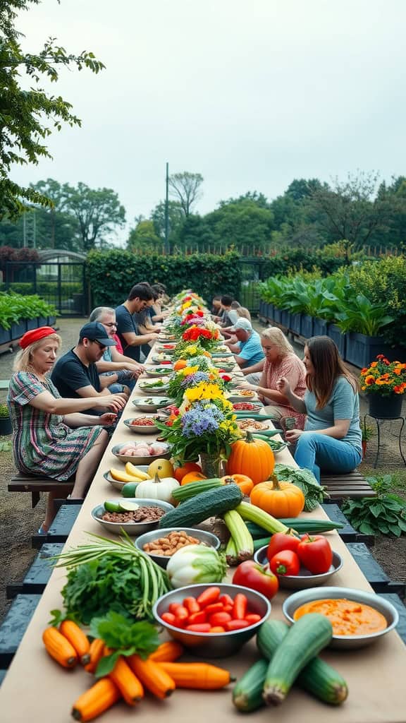 Celebrating Thanksgiving at a community garden can be a delightful experience. Imagine a long table adorned with colorful dishes, fresh produce, and vibrant flowers. The scene is lively, filled with friends and families enjoying homemade food together. This setting brings a sense of togetherness that is perfect for the holiday.