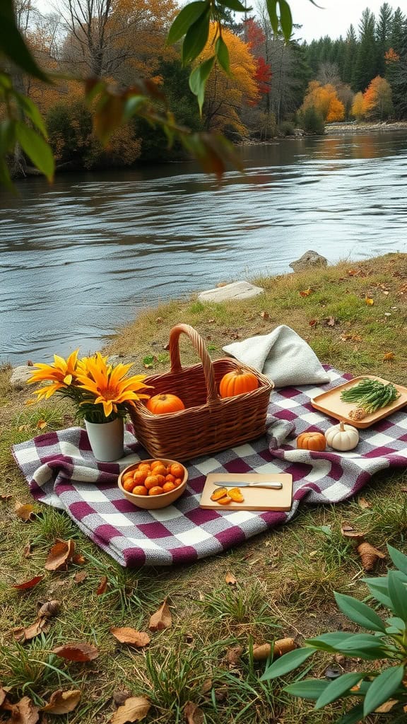 Imagine sitting by a gentle river, surrounded by colorful autumn leaves. The sound of water flowing creates a peaceful atmosphere, perfect for a Thanksgiving picnic. This setting not only offers a beautiful backdrop but also a relaxing vibe that makes for a memorable experience.