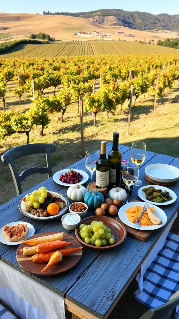 The view showcases rows of grapevines stretching into the distance, creating a serene backdrop. It’s not just about the food but also the atmosphere. A winery offers a peaceful escape, making it a fantastic spot for a Thanksgiving picnic.