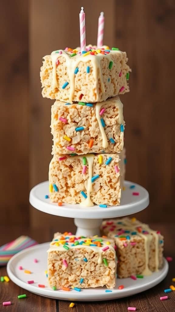 Rice Krispie treats are a classic snack, and turning them into birthday cake treats is a fun twist! These treats are not only easy to make but are also sure to delight party guests of all ages.