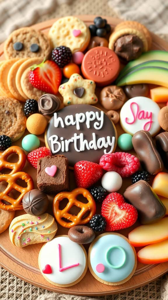 To make your own birthday cookie charcuterie board, gather an assortment of your favorite cookies, fruits, and chocolates. Arrange them on a large platter, adding in some fun decorations like festive sprinkles or edible decorations. This not only looks appealing but also makes it easy for everyone to grab their favorite goodies!