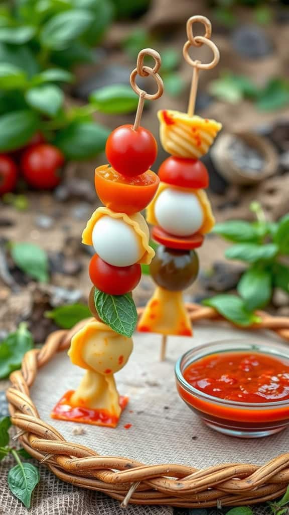 These skewers are packed with all your favorite pizza ingredients. Imagine layers of cherry tomatoes, mozzarella balls, pepperoni, and even some pasta shapes for a creative touch. Each bite is like a mini pizza party!