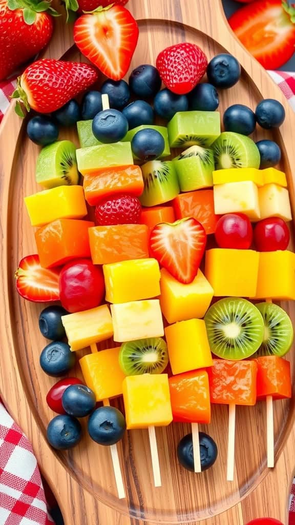 These skewers are not only visually appealing but also super easy to make. They can be prepared ahead of time and served cold, making them perfect for outdoor celebrations. Plus, they encourage guests to grab a healthy snack while mingling.