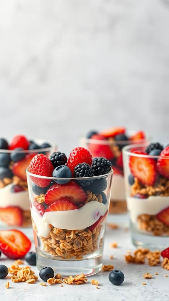 With layers of vibrant berries and a hint of sweetness from honey or maple syrup, these parfaits offer a refreshing bite that’s perfect for a sunny day. You can customize them with your favorite fruits and even add some nuts or seeds for extra texture. Everyone can enjoy their own individual serving, keeping things neat and tidy!
