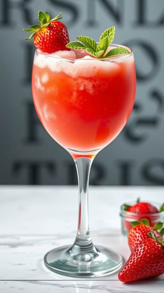 - Serve: Pour the frozen daiquiri into glasses and garnish with fresh mint leaves and a slice of strawberry on the rim.