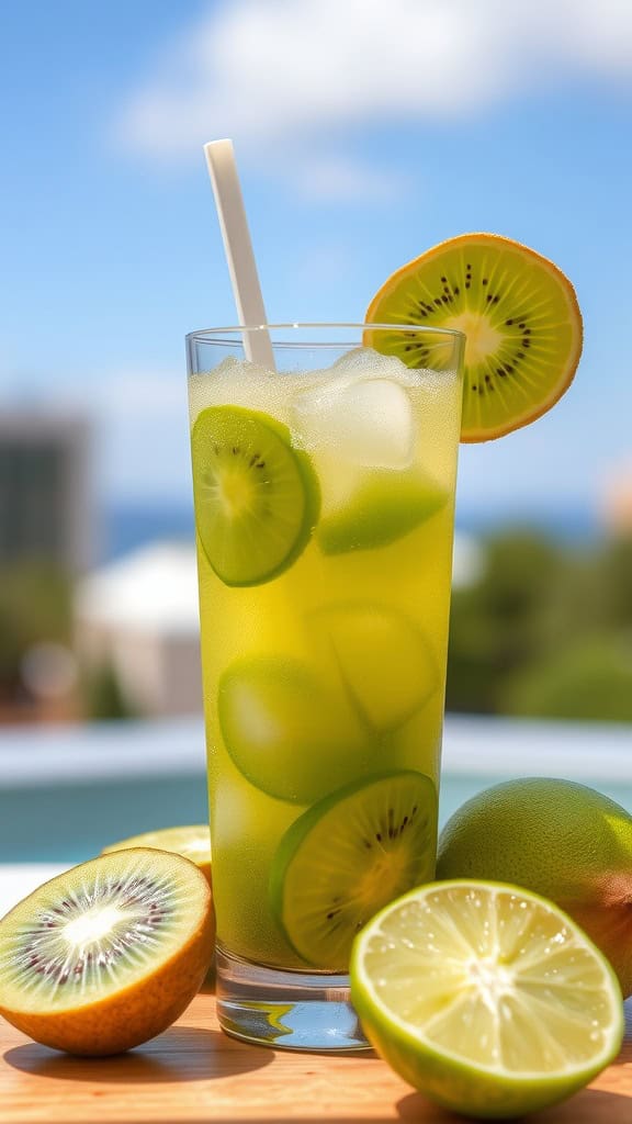 - Garnish with fresh lime and kiwi slices. Serve immediately and enjoy!