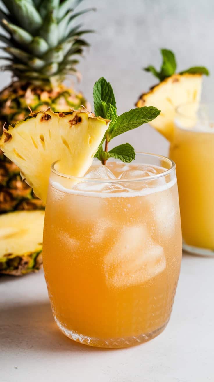- Pour the pineapple ginger ale mixture over the ice, filling each glass to the top.
