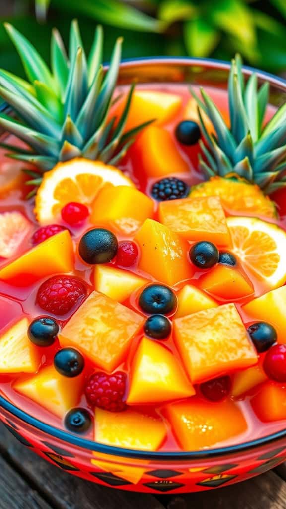 Gather your favorite tropical fruits, mix them with some juices, and you’re ready to serve a cheerful, thirst-quenching drink that will brighten up any gathering. This punch can also be easily adjusted to suit your taste, whether you prefer a sweeter or more citrusy flavor. Enjoy!