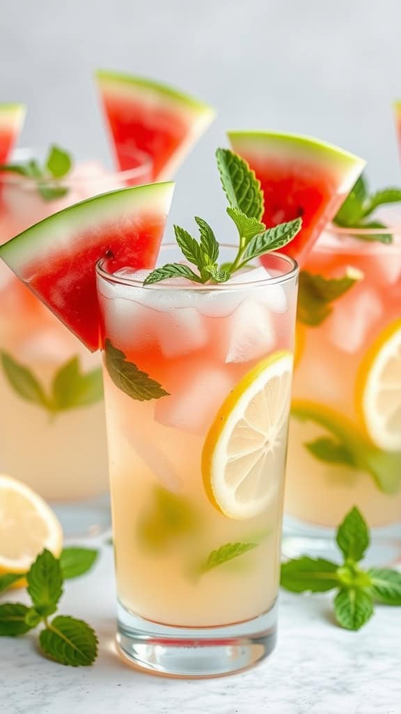 - Serve: Fill glasses with ice, pour the watermelon lemonade over, and garnish with fresh mint leaves.