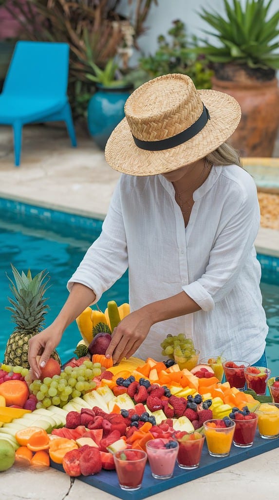 Fresh fruit is perfect for poolside snacking! Create a colorful fruit platter with watermelon, pineapple, and berries for a refreshing treat that won’t weigh swimmers down.