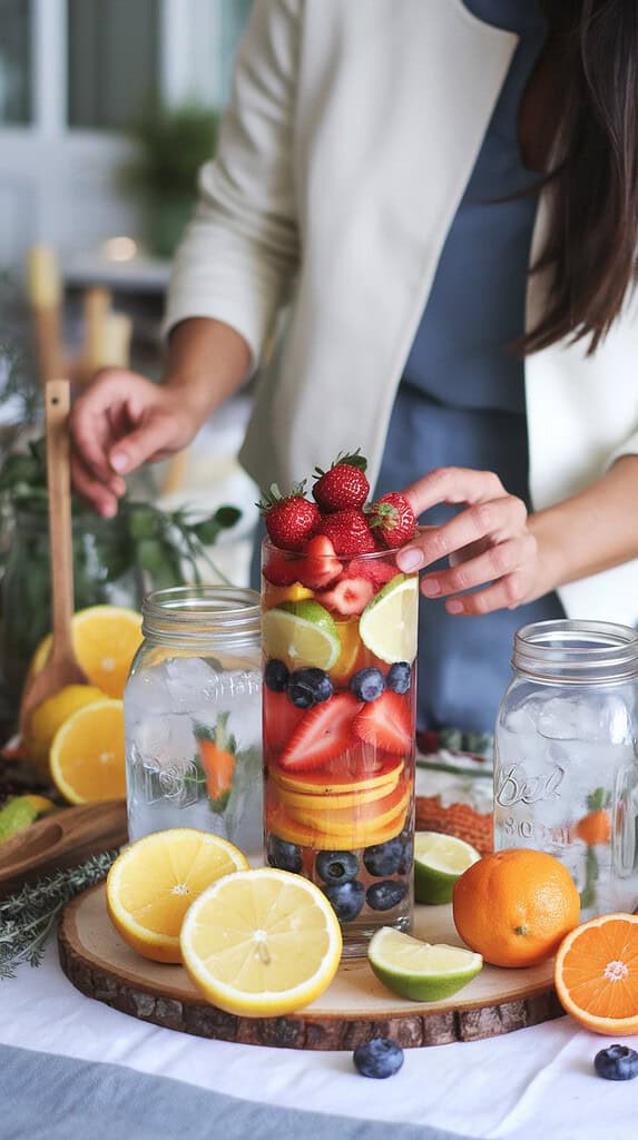 Set up a dedicated drink station with multiple options to keep everyone hydrated. Include infused water with cucumber, mint, or berries for a refreshing twist.