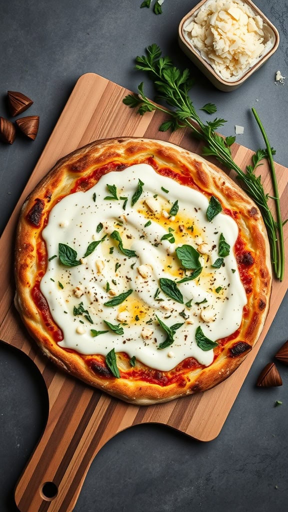 Drizzle or spread this sauce over your pizza before baking. Garnish with fresh herbs for an inviting look that’s sure to impress your friends. Trust me, this creamy garlic Parmesan sauce will keep everyone coming back for seconds!