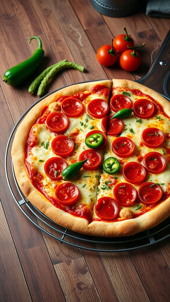 Imagine a hot pizza fresh out of the oven, with slices of pepperoni glistening against the gooey cheese. The addition of jalapeños not only enhances the flavor but also gives a vibrant look to your pizza. This eye-catching variety is sure to impress your friends on a girls’ night in.