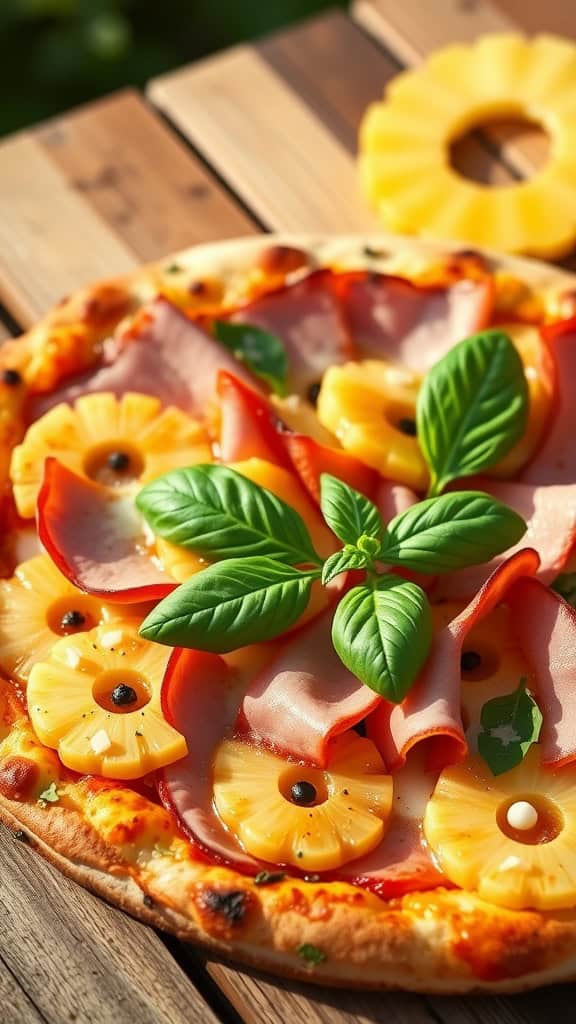 To make this pizza at home, you’ll need some simple ingredients: pizza dough, tomato sauce, mozzarella cheese, sliced ham, pineapple rings, and fresh basil. Start by preheating your oven. Roll out the dough, spread the sauce, and sprinkle the cheese on top. Then, layer on the ham and pineapple. Finish it off with a few basil leaves before baking. In just a few minutes, you’ll have a pizza that’s ready to impress your friends!