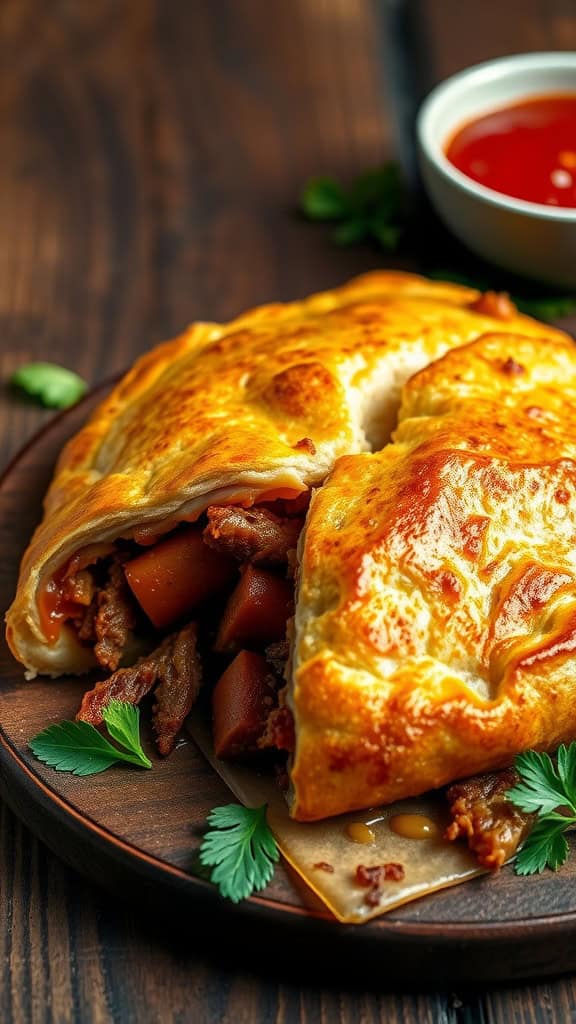 Imagine biting into a warm, golden-brown calzone, bursting at the seams with juicy steak, savory pulled pork, and zesty sausage. Each bite is a delightful combination of textures and tastes, perfect for satisfying even the most intense cravings. It’s the ultimate comfort food for meat lovers, with the option to throw in your favorite ingredients to create a unique Veggie Calzone Recipe if you desire a lighter twist.