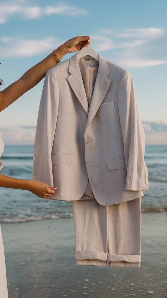 You’ll want to balance looking sharp with staying comfortable in the destination’s climate. Lighter fabrics and colors work wonderfully for warm-weather weddings.