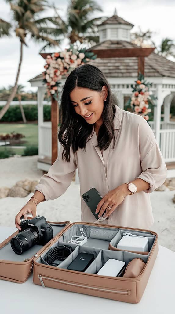 A well-packed suitcase for a destination wedding includes essentials like your outfit, comfortable shoes, and travel documents, plus extras like sunscreen or a light jacket depending on the location.